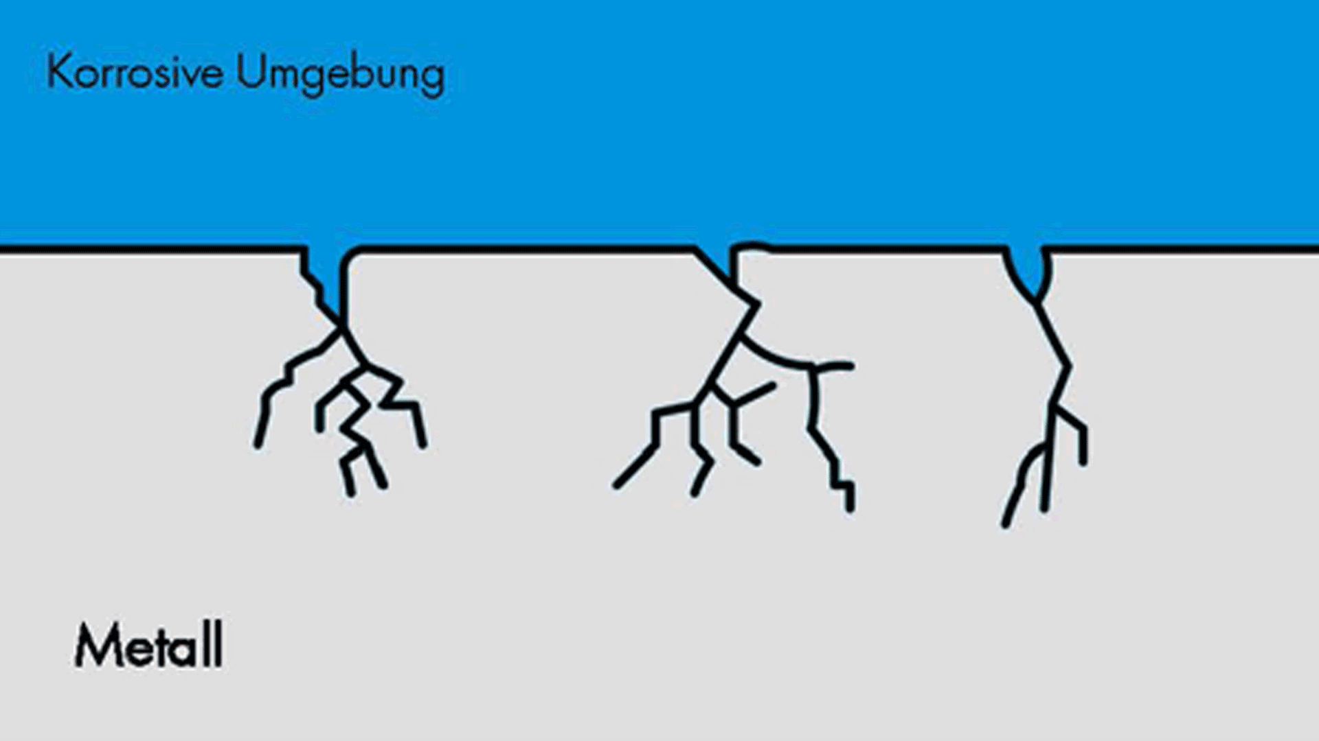 Unter Spannungskorrosion ist die Bildung von dünnen Rissen zu verstehen, die bis in die Tiefe eines Werkstoffes reichen können. Sie tritt bei mechanisch beanspruchten Bauteilen auf, welche sich gleichzeitig in einer korrosiven Umgebung befinden. Diese Werkstoffe unterliegen einer äußeren Spannung, zum Beispiel Zug-, Biege-, oder einer Eigenspannung, hervorgerufen durch zum Beispiel Schweißen oder Kaltverformung. Diese Art der Kor-rosion ist sehr gefährlich, da das Bauteil durch Brechen vollständig versagen könnte. Besonders anfällig sind austenitische Stähle in einer Chloridumgebung bei Temperaturen zwischen von 50°C bis 60°C.
