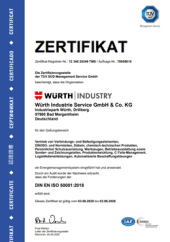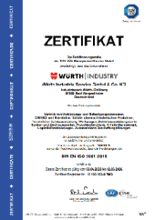 |  | DIN EN ISO 9001:2015 | Zertifikat: DIN EN ISO 9001:2015 von Würth Industrie Service | DE | EN |