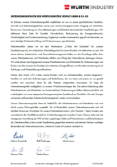 |  | Code of Conduct | Dokument: Lesen Sie mehr über die Würth Industrie Service und ihr Engagement zur nachhaltigen Entwicklung. | DE | EN | NL |
