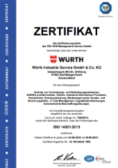 |  | DIN EN ISO 14001:2015 | Zertifikat: DIN EN ISO 14001:2015 von Würth Industrie Service | DE | EN |