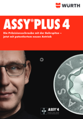 |  | ASSY®PLUS 4 | Broschüre: Lesen Sie mehr über die Präzisionsschraube mit der Bohrspitze: ASSY®plus4 mit patentiertem RW-Antrieb. | DE |