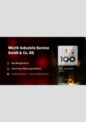 |  | TOP 100 – Top-Innovator 2021 | Video: Sehen Sie in diesem Video, weshalb die Würth Industrie Service zur Innovationselite des deutschen Mittelstandes gehört. | DE |